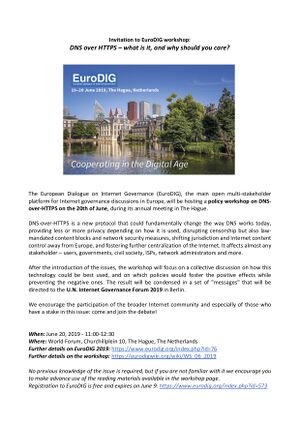 - Wolfgang Kleinwächter's Internet governance outlook for 2019, referring to DoH at the end [9]